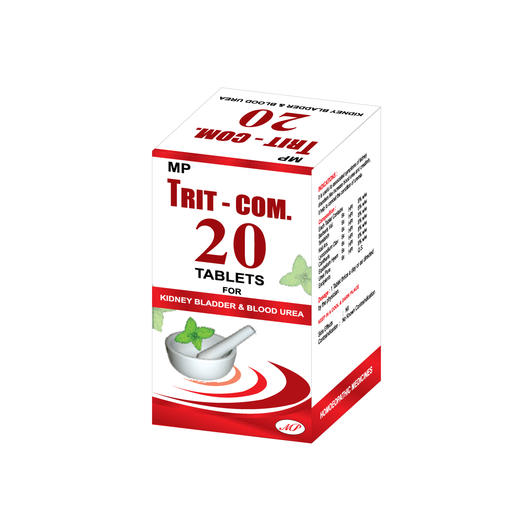 Indication: Trit Com 20 tablets are a safe and effective remedy that helps relieve associated symptoms of kidney disorders like increased blood urea and creatinine.